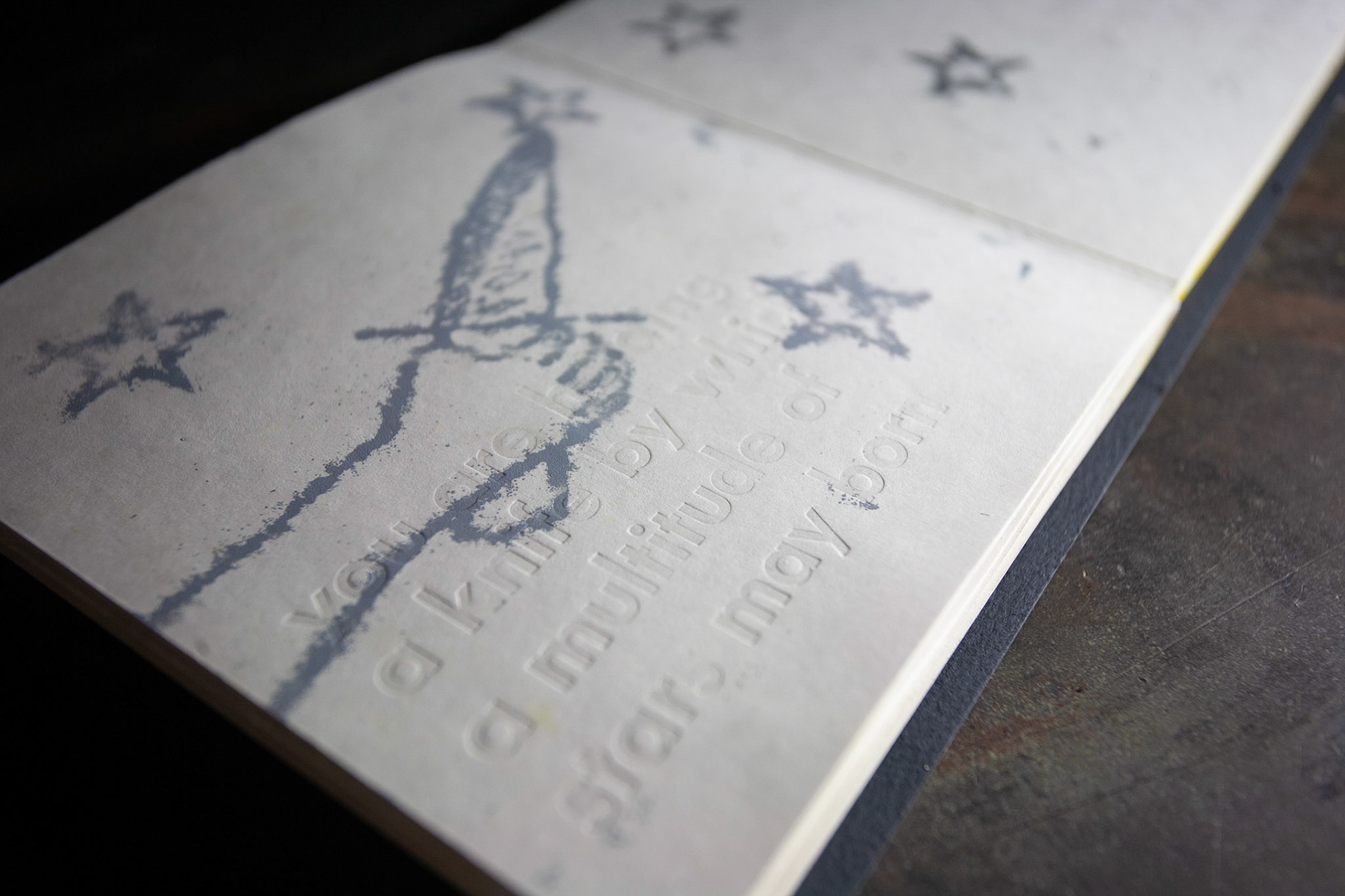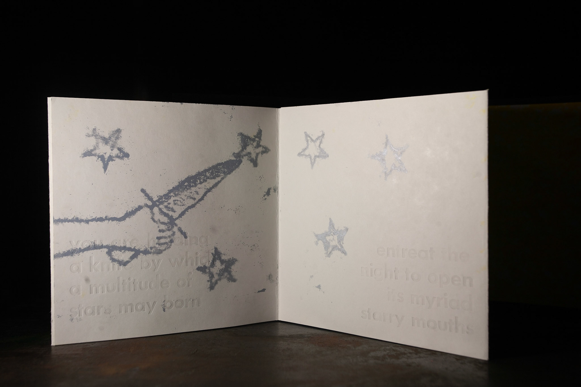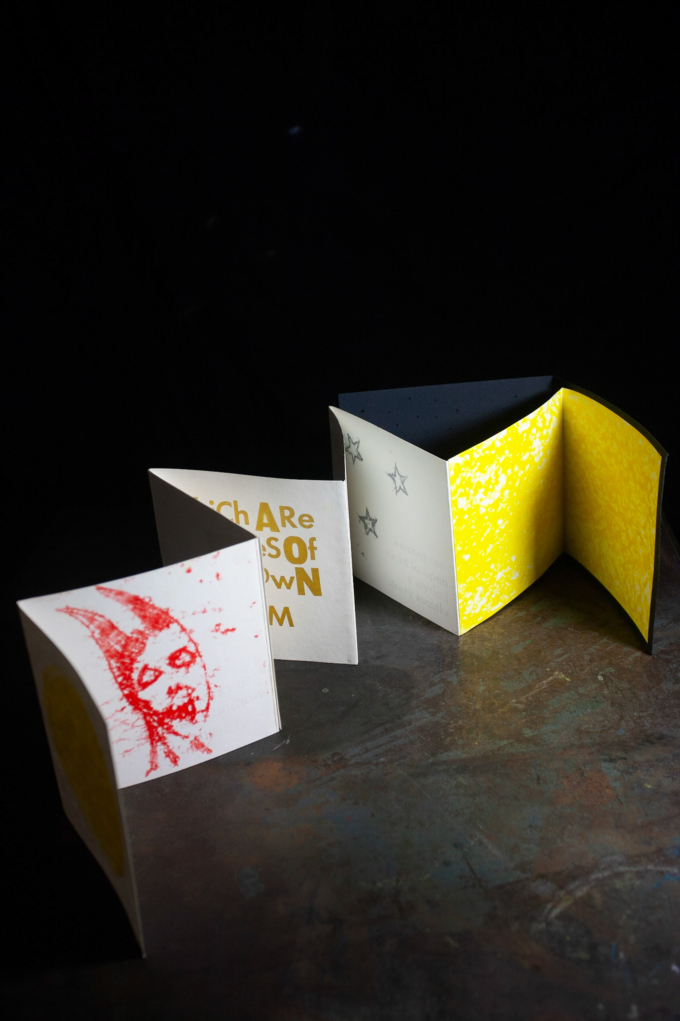 monoprint & hand-set type letterpress accordion book on French Paper